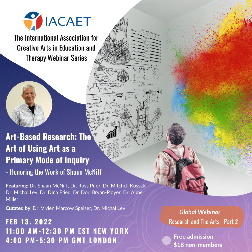 The two Co-Editors-in-Chief Emeritus received the Distinguished Service Awards for their excellent work and contribution to CAET journal at IACAET global webinar on Feb 13, 2022: Art-Based Research: The Art of Using Art as a Primary Mode of Inquiry – Honoring the work of Shaun McNiff. A number of guest speakers: Dr. Ross Prior, Dr. Mitchell Kossak, Dr. Michal Lev, Dr. Dina Fried, Dr. Dori Bryan-Ployer, Dr. Abbe Miller, Curators: Dr. Vivien Marcow Speiser, Dr. Michal Lev shared their great experience working with Shaun in the past decades. Dr. Tony Yu Zhou, IACAET CEO, founding executive editor of CAET, gave the Distinguished Service Awards to Shaun McNiff and Debra Kalmanowitz in the presence of some 100 participants in the webinar.